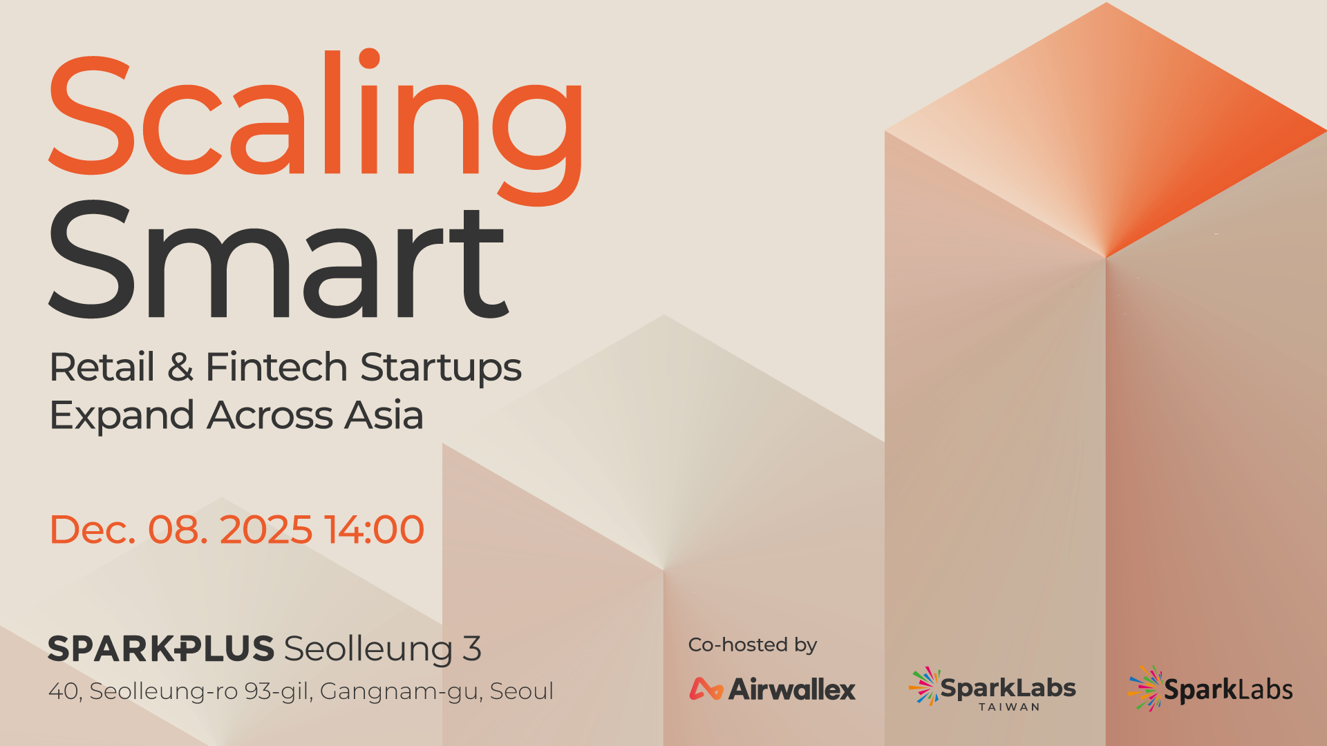 한국을 넘어 - 🌏아시아 시장 으로 진출하고 싶다면!? 스파크랩 X 스파크랩 대만 X Airwallex이 함께 준비한 "Scaling Smart: 아시아 진출 전략 가이드" 행사에 여러분을 초대합니다.